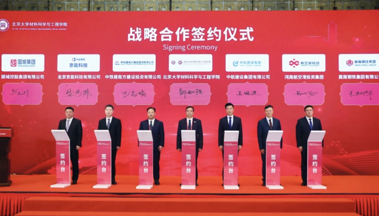 随后,在热烈的掌声中,材料科学与工程学院院长邹如强与中铁建南方建设投资有限公司总经理李寿福,中航建设集团有限公司董事长陈先瑞,北京京能科技有限公司总经理崇为伟,河南航空港投资集团党委书记、董事长易日勿,国城控股集团有限公司董事长吴城,冀南钢铁集团有限公司董事长王树华签署战略合作协议。根据签约,校企双方将在人才培养、学科建设、科学研究等方面展开深入合作,共谋学科与产业发展。