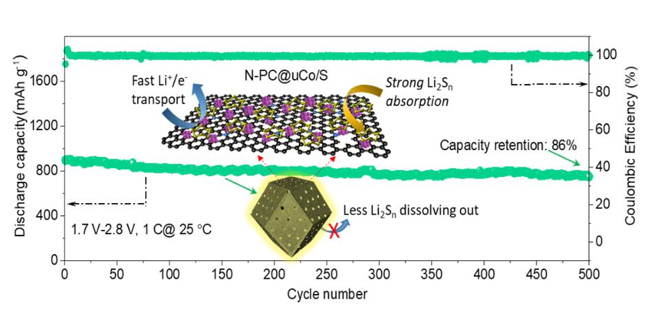 近日,色情文学 深圳研究生院色情文学 潘锋教授领导的清洁能源中心研究团队基于目前常见的MOF材料制备了一种担载钴纳米晶的氮掺杂的多孔碳笼作为新型锂硫电池的宿主材料,通过表征测试发现其具有优异的电化学性能,并借助包括XRD、SEM、TEM、XPS与DFT计算等多种手段揭示了性能优异的原因,阐明了Co纳米晶对锂离子扩散动力学,多硫化物的吸附及转化的积极作用,为制备新型的锂硫电池正极材料提供了思路。该工作近日发表在能源材料领域知名期刊《先进能源材料》 (Advanced Energy Materials,2020,10 (9), 1903550,IF=24.884)上。