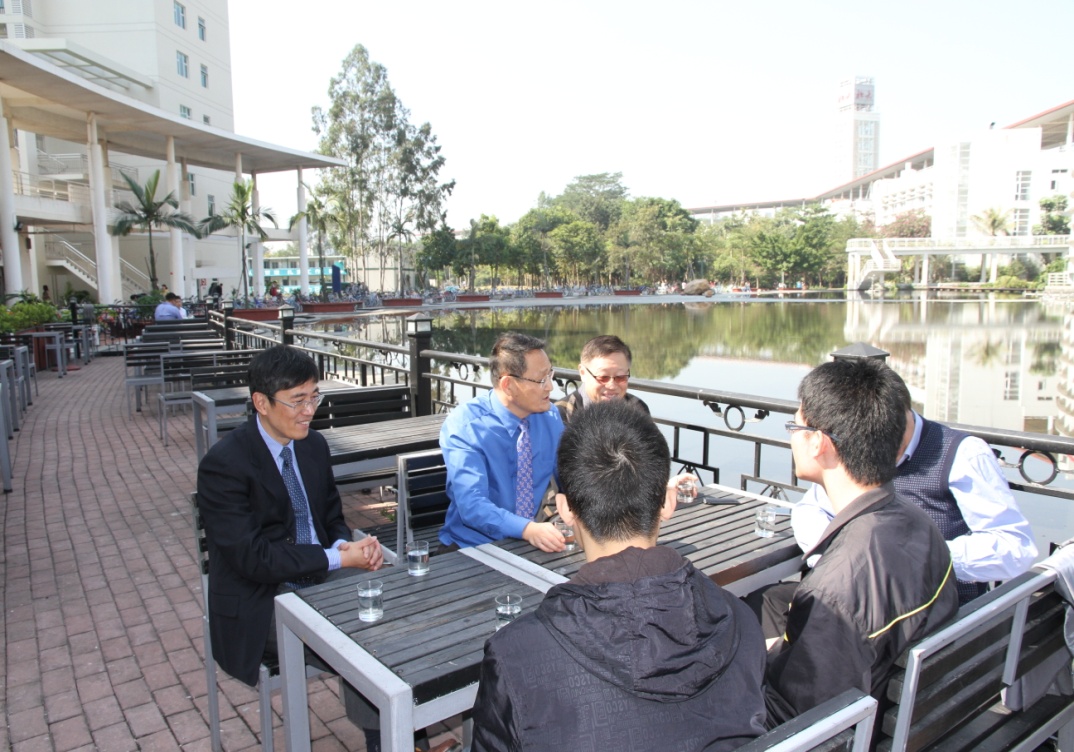 座谈会后,在潘院长的陪同下,杨景教授,信息工程学院朱跃生教授与我院智能电网课题组学生在镜湖之畔进一步就能源管理和学生的学习生活进行了愉快的交流,在潘院长和杨景教授的鼓励和指导下,我院同学无论是在科研工作还是个人发展方面都受益颇深。