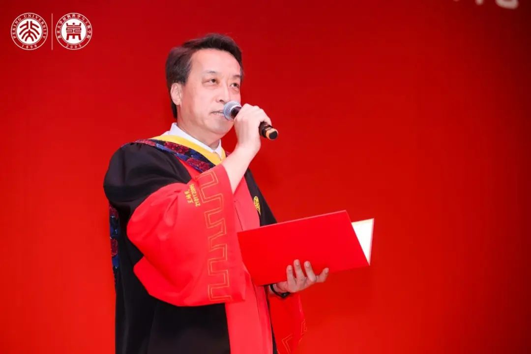 向毕业生表示热烈祝贺,向老师和家长致以敬意,向关注和支持学院发展的社会各界朋友表示感谢,并对即将踏上人生新征程的同学们提出三点期望,希望毕业生们能够立根信仰,于变局中把稳航向,以格物致知之志求真,以强国有我之心践行,在浮躁中保持清醒,于多元中坚定自持;厚积本领,于实干中锻造锋芒,跳出“理论舒适区”,以实践为炉、以问题为砺,在失败中“增韧”、在迭代中“提强”;融通协同,于时代中共塑未来,以北大材料的温度与坚实,为这个不确定的世界带去确定的价值。