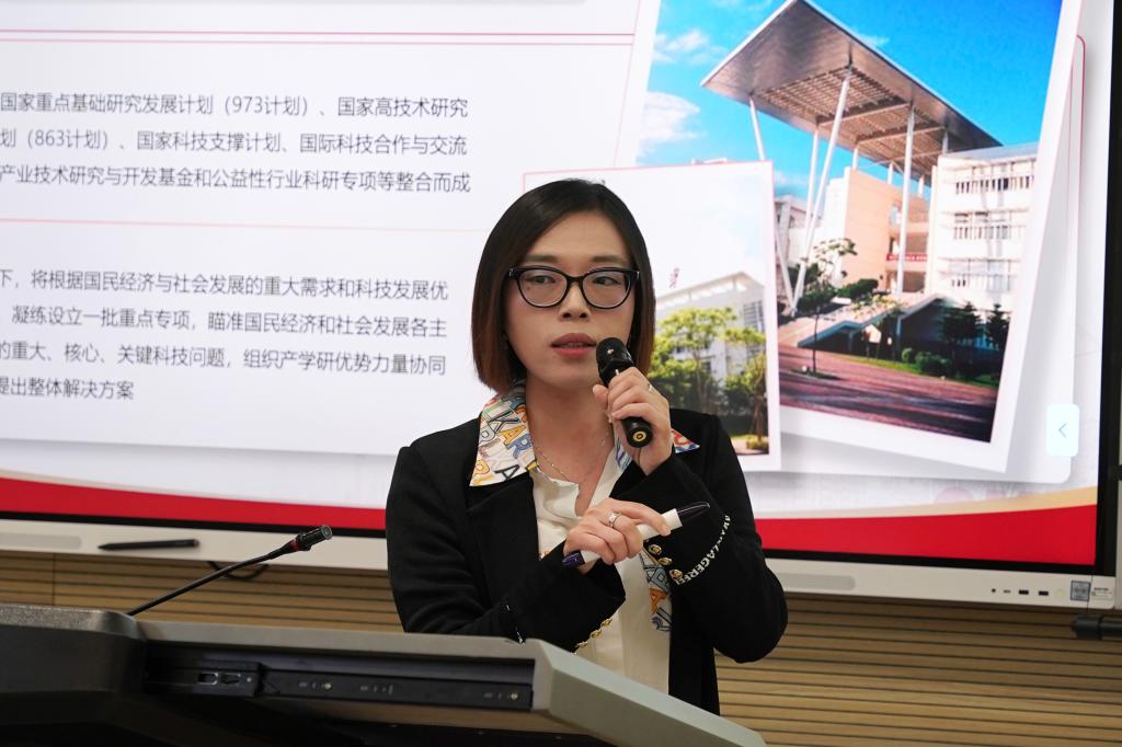 史莉莉聚焦竞争性国家级科技计划项目,作项目资助体系解读与政策宣贯。她系统介绍了国家重点研发计划、科技创新2030重大项目、国家自然科学基金等各类项目的最新政策与改革举措;重点解读了国家重点研发计划青年科学家项目、颠覆性技术创新重点专项,以及基金委原创探索计划、重大非共识项目、科学仪器与科学工具等项目定位、评审标准与申报要点;围绕交叉学部,从其设立背景、资助现状、2026年新增项目类别及未来布局等角度进行了深入分析。同时,她强调了承担国家级科研项目对完善学院科技创新体系、提升整体科研能力、助力科研人员学术成长的重要作用。