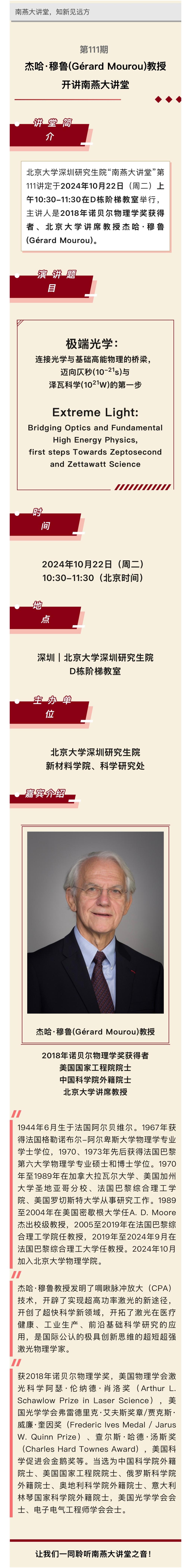 学术讲座:诺贝尔物理学奖获得者、色情文学 讲席教授杰哈·穆鲁 (Gérard Mourou)受邀作学术报告