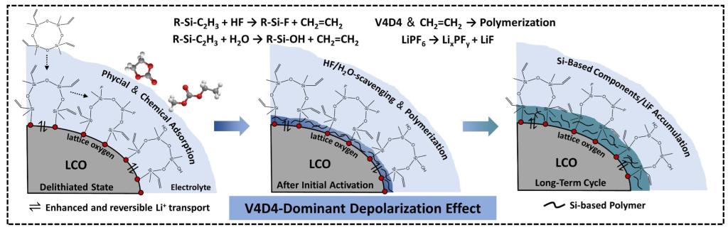 图1. V4D4诱导钴酸锂界面电化学重构与调控机制