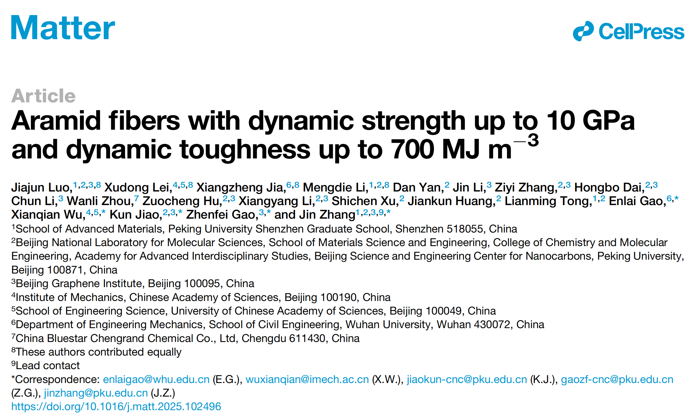 相关研究成果以“Aramid fibers with dynamic strength up to 10 GPa and dynamic toughness up to 700 MJ m–3”为题,发表于国际知名期刊《Matter》。该成果获得《新闻周刊》(Newsweek)、《新科学家》(New Scientist)等多家国内外媒体报道,并获《新科学家》头条刊载,体现了国际学术界对该研究的广泛关注。