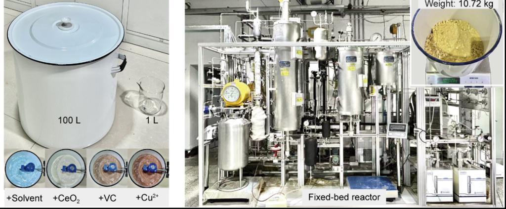 更具产业意义的是,该策略在放大尺度上已得到成功验证。研究团队在 100 L 反应器中实现了公斤级单原子催化剂的稳定制备,并在工业烟气脱硝、CO氧化、二氧化碳加氢制甲醇及碳四馏分加氢等热催化反应中表现出优异的催化活性、选择性和长期稳定性,显示出良好的工业兼容性与规模化应用前景。