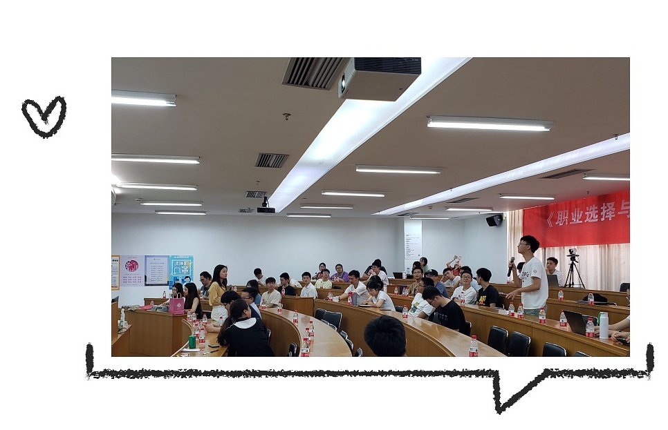 全院师生共同参与活动。此次交流会采取了“线上+线下”的灵活形式,特邀六位不同行业的校友分享自己的求职历程、职场经验等,内容涵盖了科研工作、选调、教师、自主创业等多个领域。