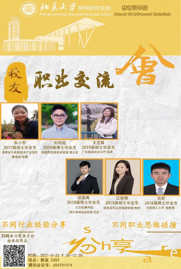 本次交流会在活跃的气氛中圆满结束。求职是一次自我探索的旅程,通过这次的职业分享会,希望能够帮助同学们更加深入地了解行业信息,更加全面地思考自我选择,更加从容地面对求职道路;希望每一位北大新材料学子,在各自未来的领域中,高扬理想旗帜,坚定信念,让青春与时代同行,引领未来,扎根四方!