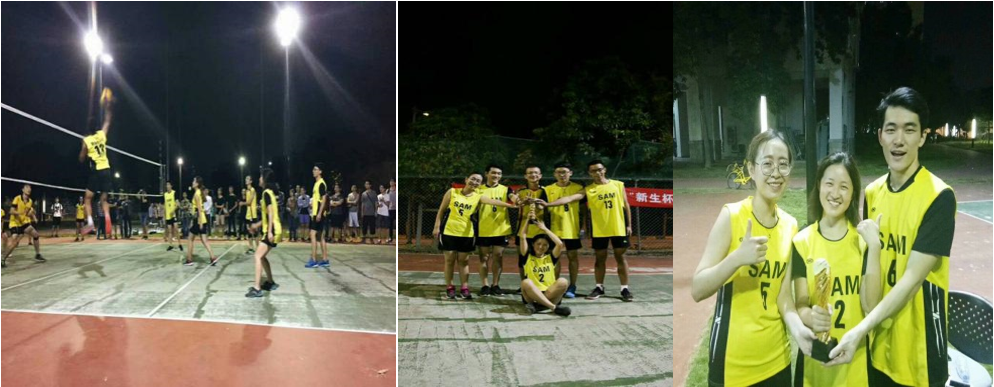 排球比赛可谓异常激烈。我院作为传统排球强院,曾夺得前年的新生杯排球赛冠军;在去年的排球赛失利屈居亚军后,同学们永不言败的精神告诉自己2017我们还会回来的;果然随着2017级新鲜血液的注入,我们的排球队在小组赛中就表现异常凶猛:接连以大比分连克各个院队,以总分第一名的好成绩强势杀入总决赛;在10月27日晚上举行的和老对手化生学院的总决赛中,前四局,我院和化生战成2:2平;决胜局,队员们破釜沉舟,越战越勇,最终我院经过5局苦战,以大比分3:2战胜化生学院,问鼎本届新生杯排球赛冠军;这是我新材料人敢于拼搏,勇夺第一的优秀品质的体现。