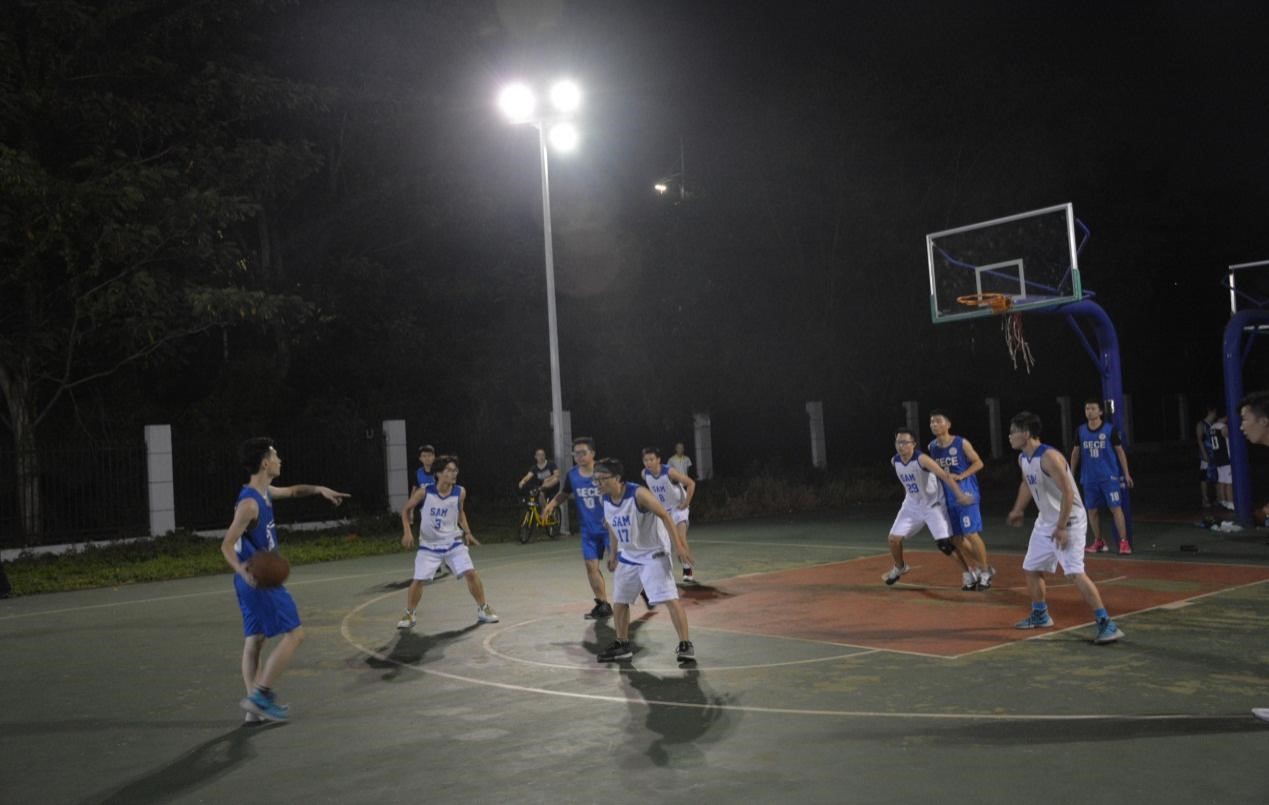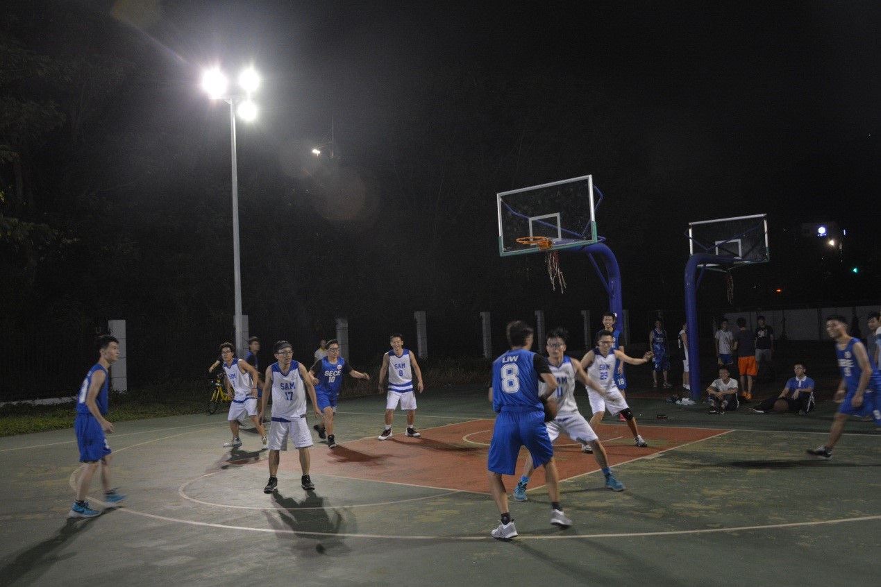 今年篮球队的比赛可谓让人非常的遗憾,小组赛的第一场在北大篮球场开打,我院对阵老对手信工学院,前三节比赛中,我院队员表现出了高超的球技和昂扬的斗志,彼此配合非常默契,无论是气势还是比分都占据优势,遗憾的是,在高强度的消耗下,第四节同学们开始体力下降,导致失误增多,最终被对手翻盘,以6分的微弱劣势惜败信工。小组赛第二场迎战国法,开局我院队员又是接连投进好球,比分最多的时候领先达到8分,就当所有人都以为我院必胜的时候,第四局同学们又是出现了之前比赛同样的情况-体力不支;当时间走光时,我院和国法打成平局,比赛进入加时,加时赛国法接连打出绝妙配合,比分反超,最终新材料止步8强。