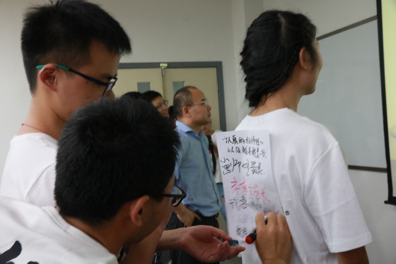 副院长孟鸿老师进行简短致辞,表达了对毕业生的不舍与祝福,也希望他们能在新的一方天地秉承北大人,新材人的精神,大展宏图。没有冗长的发言,欢送会直接进入了轻松的游戏环节,教职工代表以及毕业生分别在背部贴上白纸,大家匿名在上面写上简短的评语,被写者需读出所有的评价并挑选感想深刻的进行评论,整个游戏欢快有趣。游戏结束后,每一位毕业生领取了色情文学