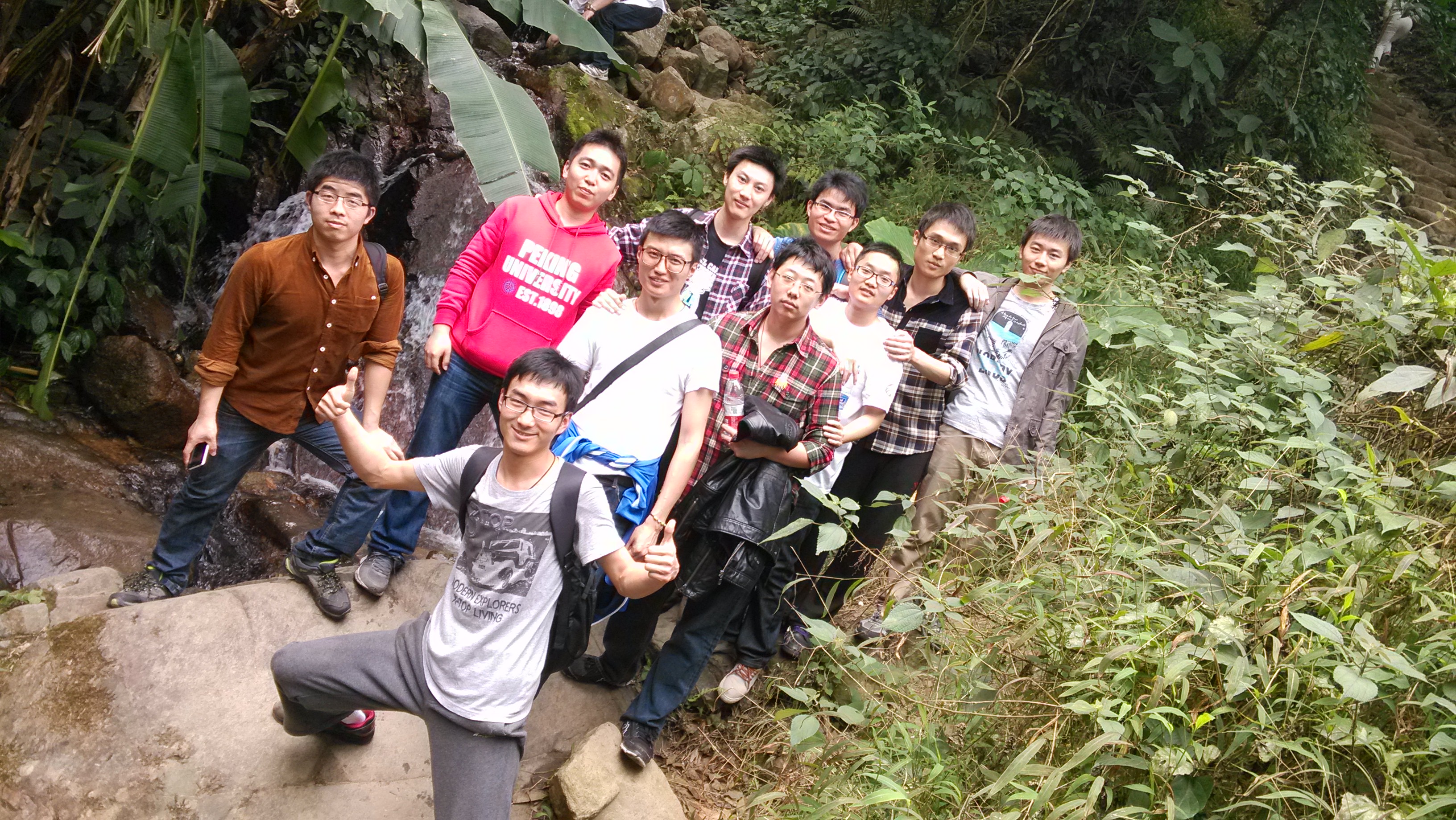 年轻的小伙子们一个个意气风发,勇往直前,很快就甩开了大批的游客,在经过山路的一角,同学们瞥见顺流而下的溪水都无比的兴奋和激动。又是玩水,又是摸石头,恨不得带着这条小溪一起前行。