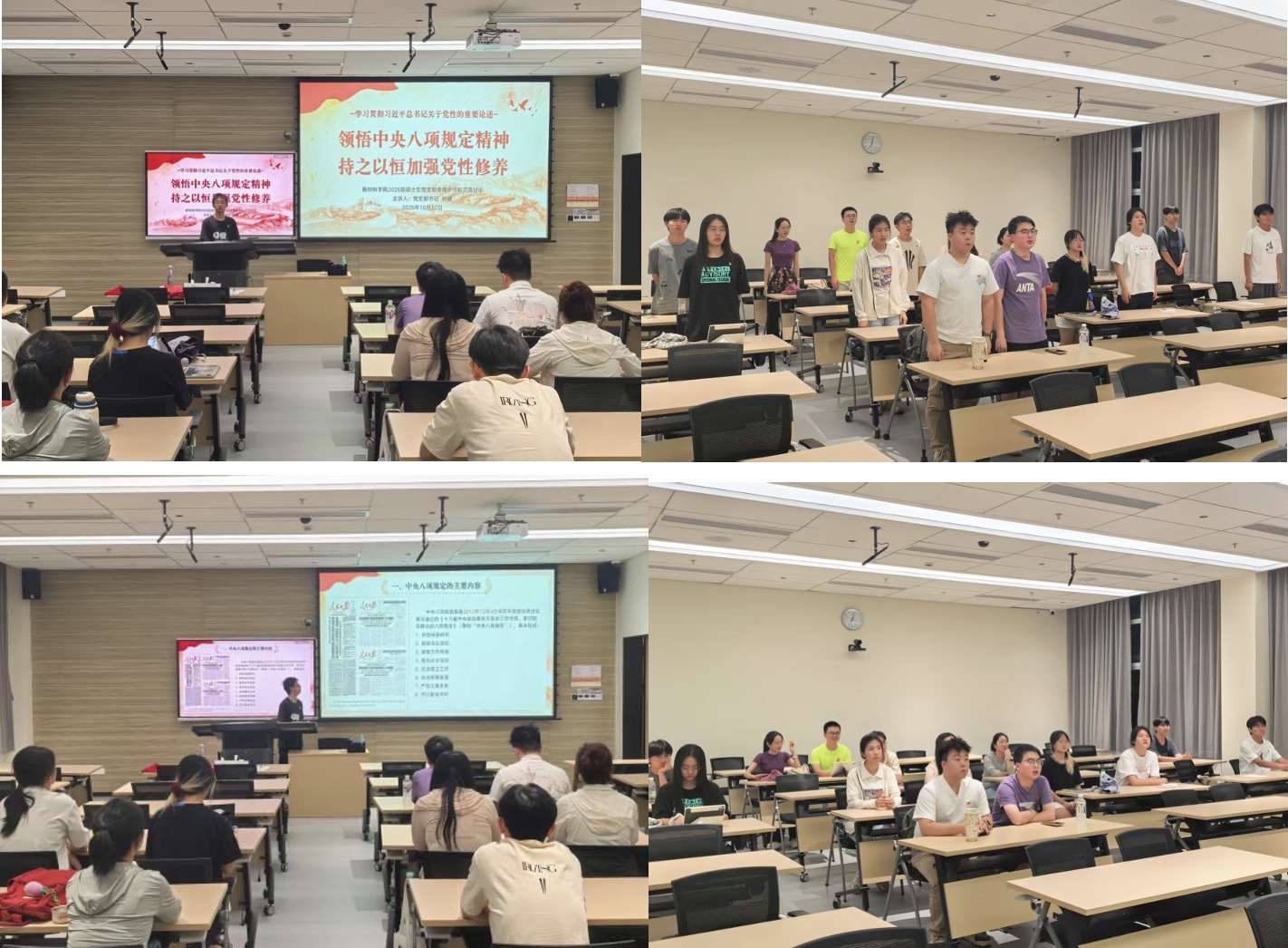 硕士生党支部在C103组织开展“领悟中央八项规定精神,持之以恒加强党性修养”专题党课学习会。