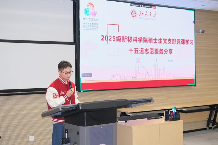 中山大学材料科学与工程学院党务秘书、本科材料物理党支部书记吴文蔚老师回顾了中山大学志愿服务工作的优良传统。他指出,学校年均产生星级志愿者逾千名,活跃于乡村振兴、支教义教、赛会服务等诸多领域。他以本院学生运用高分子材料专业知识,创新提升水果保鲜技术以助力惠农项目为例,说明了志愿服务与专业结合的巨大潜力。作为第十五届全运会志愿者培训教师团队成员,吴文蔚老师表示,学院党委将继续以志愿服务为重要抓手,拓展党建工作外延,举办更多高质量的交流活动。他期望党员同志发挥先锋模范作用,结合专业,为强国建设、民族复兴贡献志愿力量。