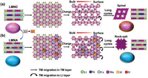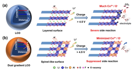 随着移动通讯设备对电池续航能力的要求越来越高,进一步提升钴酸锂的能量密度具有重大产业需求。潘锋教授团队从高电压钴酸锂的微观结构特征、多元素掺杂效应及表面双梯度设计三个方面开展了系统性的研究工作。